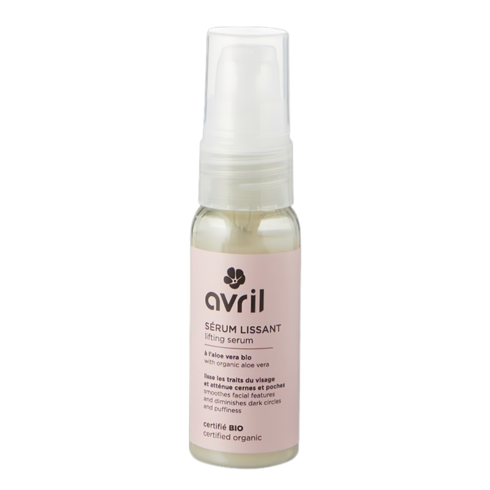 Description: Découvrez le sérum lissant certifié bio Avril : un soin visage essentiel. Ce sérum est spécialement conçu pour lisser les traits du visage et atténuer les cernes et poches, avec une composition riche en actifs d'origine naturelle. Intégrez le à votre routine beauté, pour une peau à l'aspect plus lisse ! Convient à tous les types de peaux, grasses, matures, mixtes, normales et sèches.